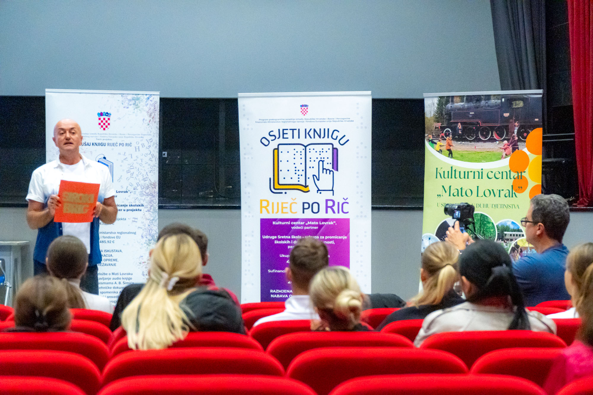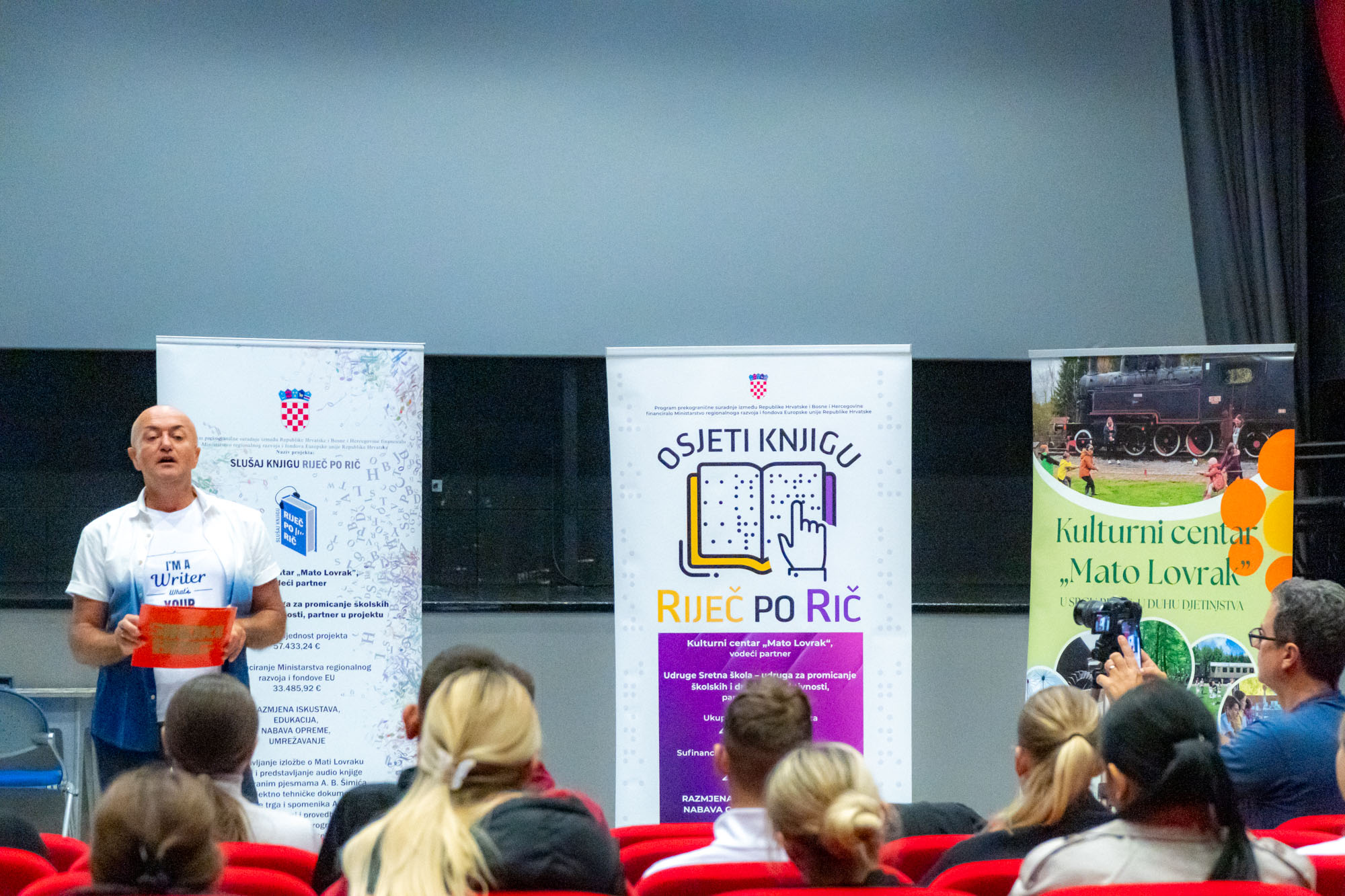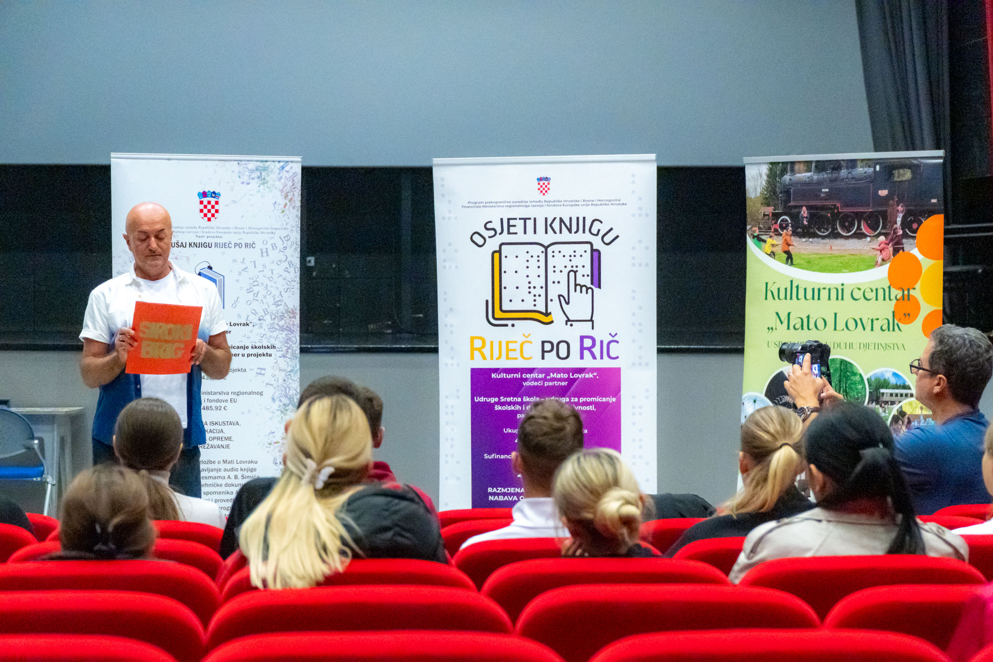 Okupljenima se obratila i ravnateljica Kulturnog centra ''Mato Lovrak'' Zvjezdana Galkowski koja je podsjetila kako je projekt ''Slušam knjigu riječ po rič'' nastavak suradnje velikogrđevačkog Centra i Udruge ''Sretna škola''. Naime, prošle godine zajednički su proveli sličan projekt ''Osjeti knjigu riječ po riječ''.