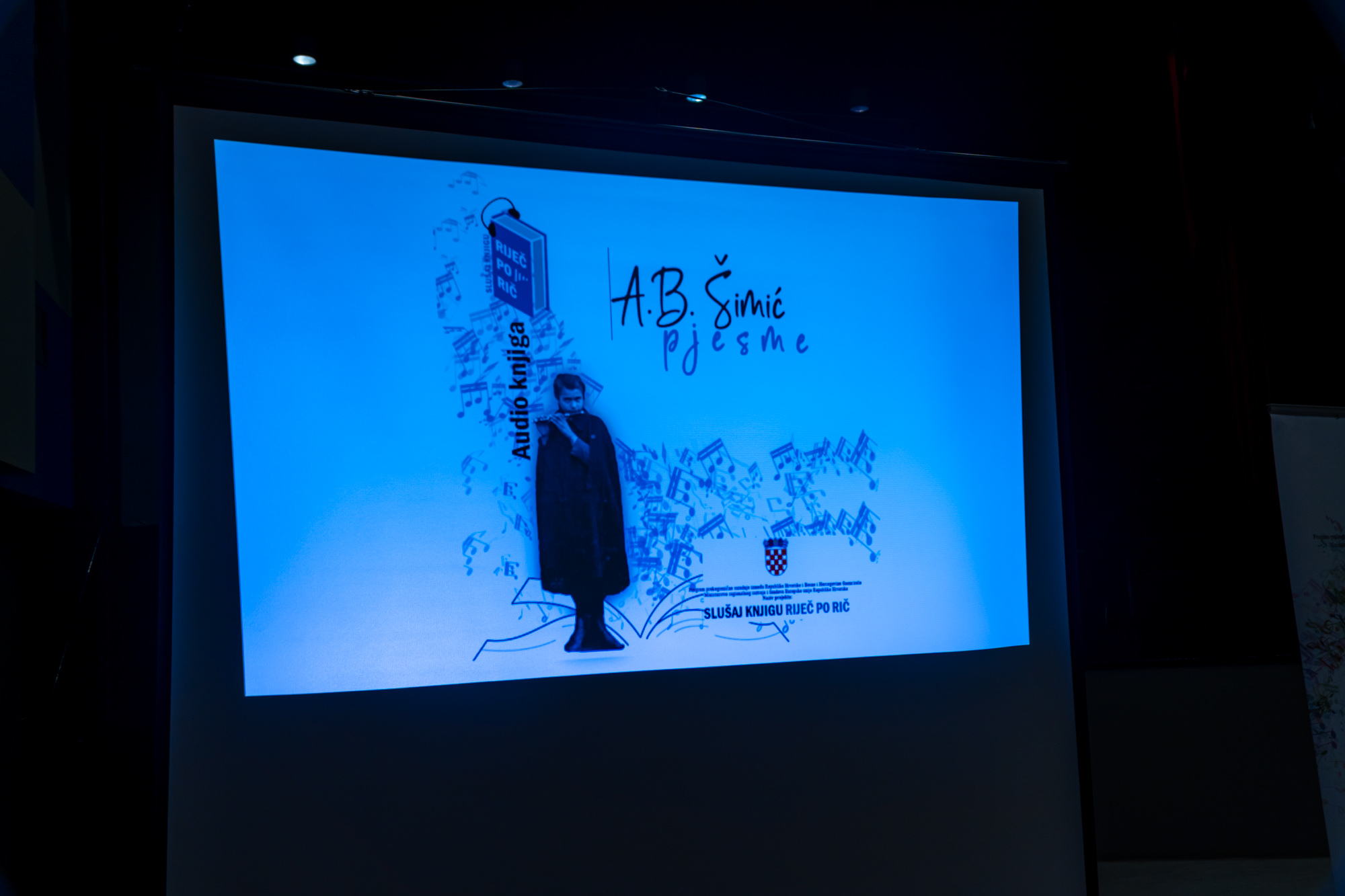 Gosti iz Širokog Brijega književnu večer su upotpunili promocijom audio zbirke pjesama svoga zemljaka. Naime, A. B. Šimić je rođen u Drinovcima, mjestu nedaleko Širokog Brijega, grada koji je i opjevao u ''Pjesmi o jednom brijegu''. Audio zbirka je izdana povodom 100. godišnjice smrti pjesnika, a sadrži 27 pjesama. O njegovom stvaralaštvu govorio je Miro Naletilić, knjižničar i član Udruge ''Sretna škola''.